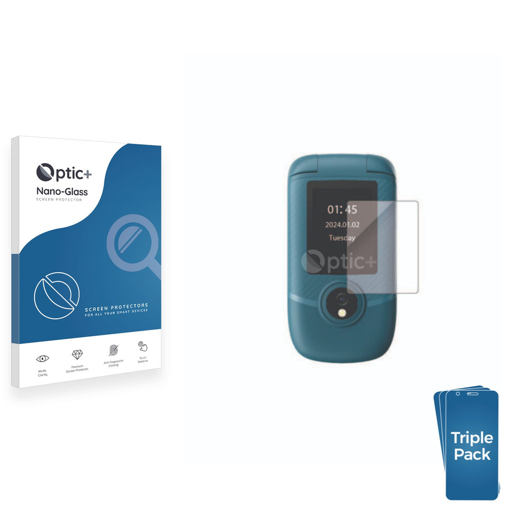 - Three Optic+ Nano-Glass Rear Protectors for Blackview N2000 Flip