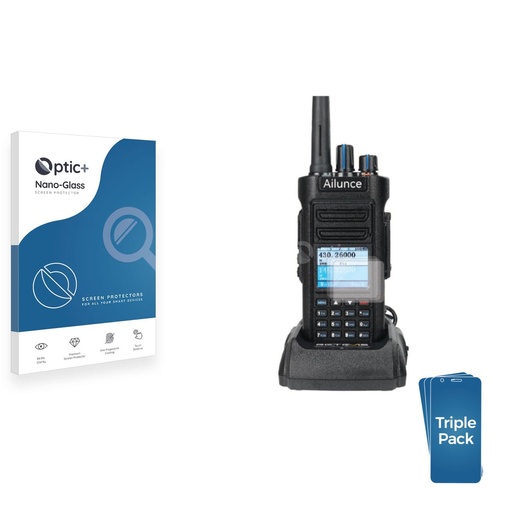 • Three Pack Optic+ Nano-Glass Screen Protectors for Ailunce HD2 Radio