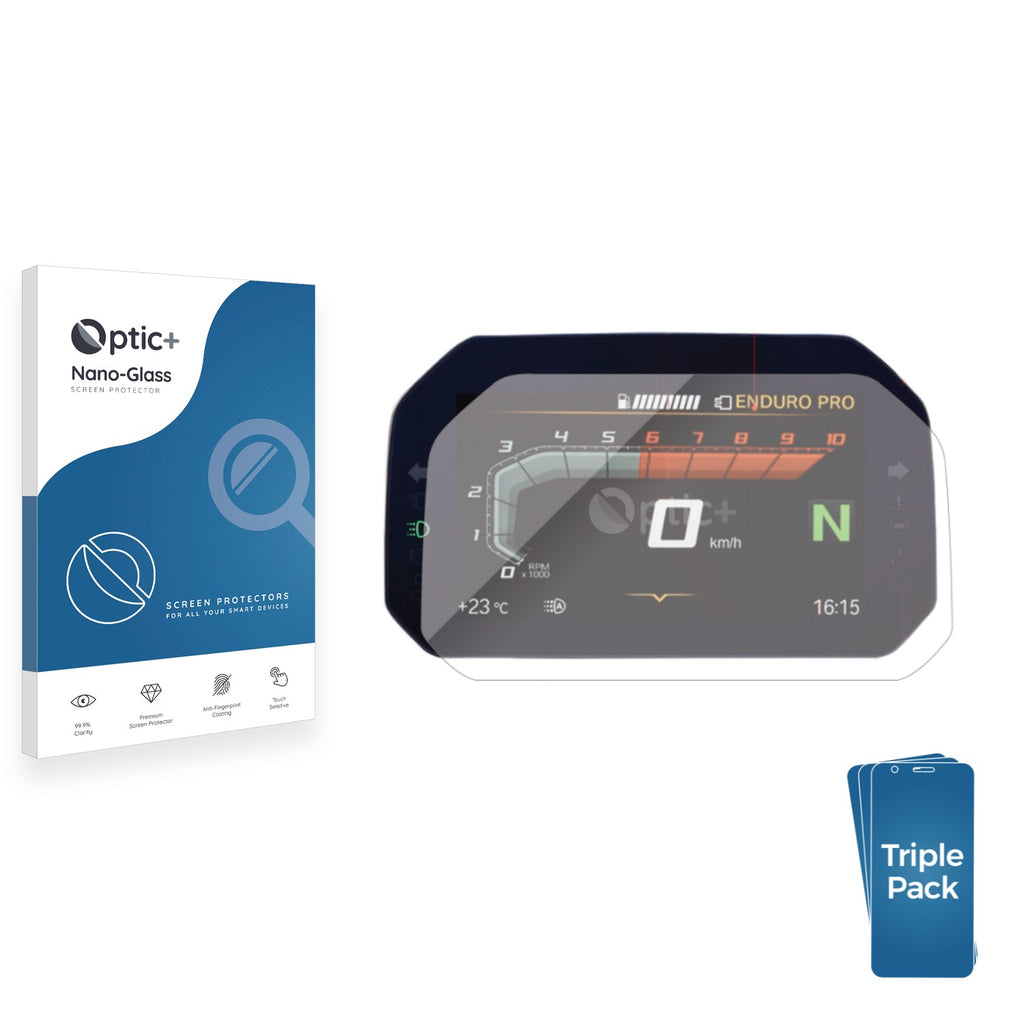 • Three Pack Optic+ Nano-Glass Screen Protectors for BMW R 1250 RS 2019-2024 Connectivity TFT 6.5