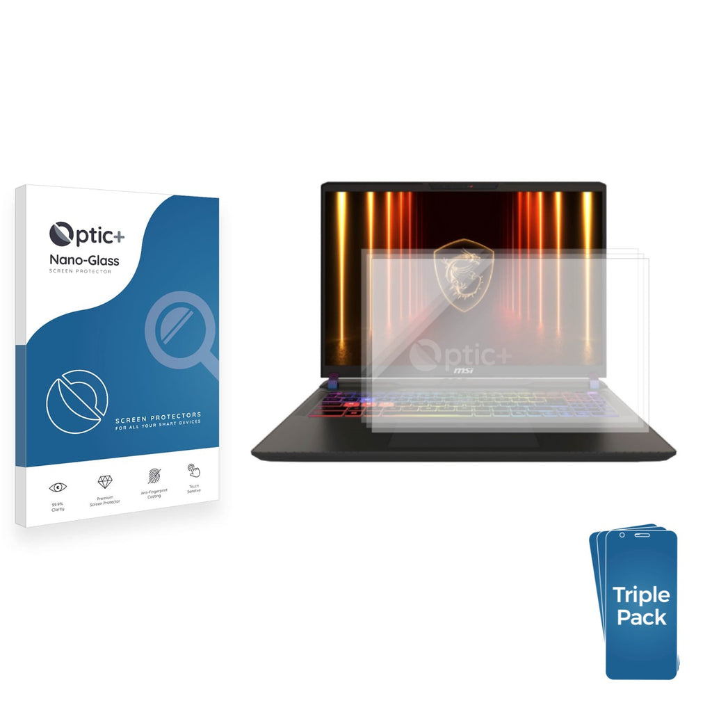 • Three Pack Optic+ Nano-Glass Screen Protectors for MSI Vector 16 HX AI