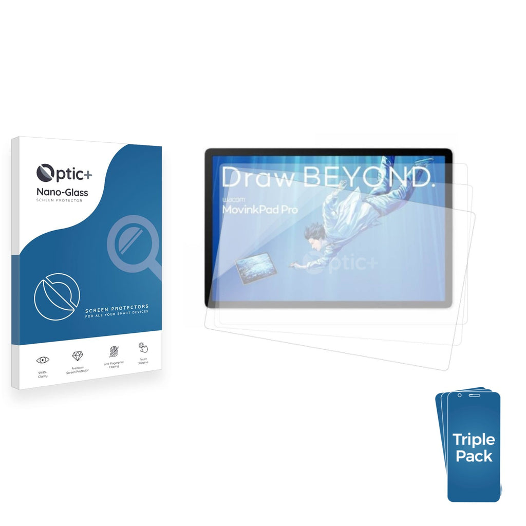 - Three Pack Optic+ Nano-Glass Screen Protectors for Wacom MovinkPad Pro 14