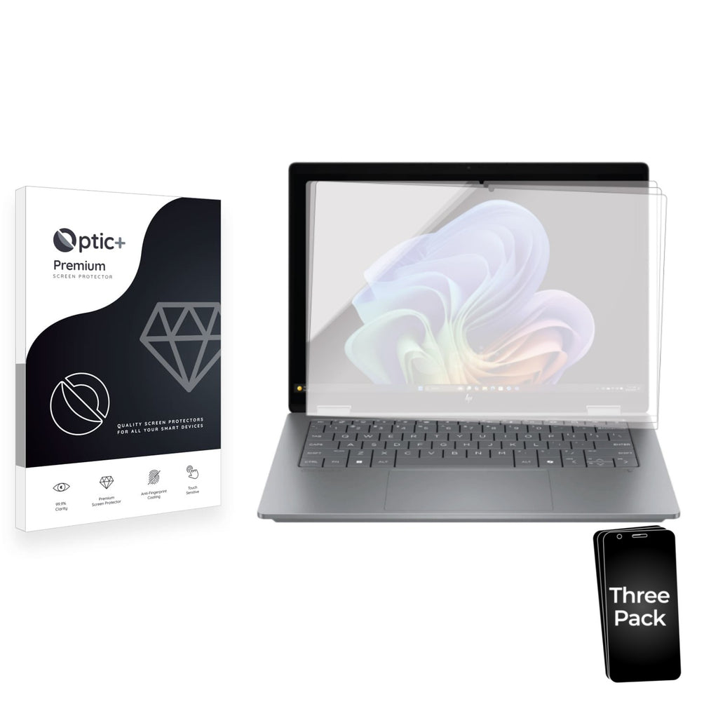 - Three Optic+ Premium Film Screen Protectors for HP Omnibook X Flip Laptop NGAI 14