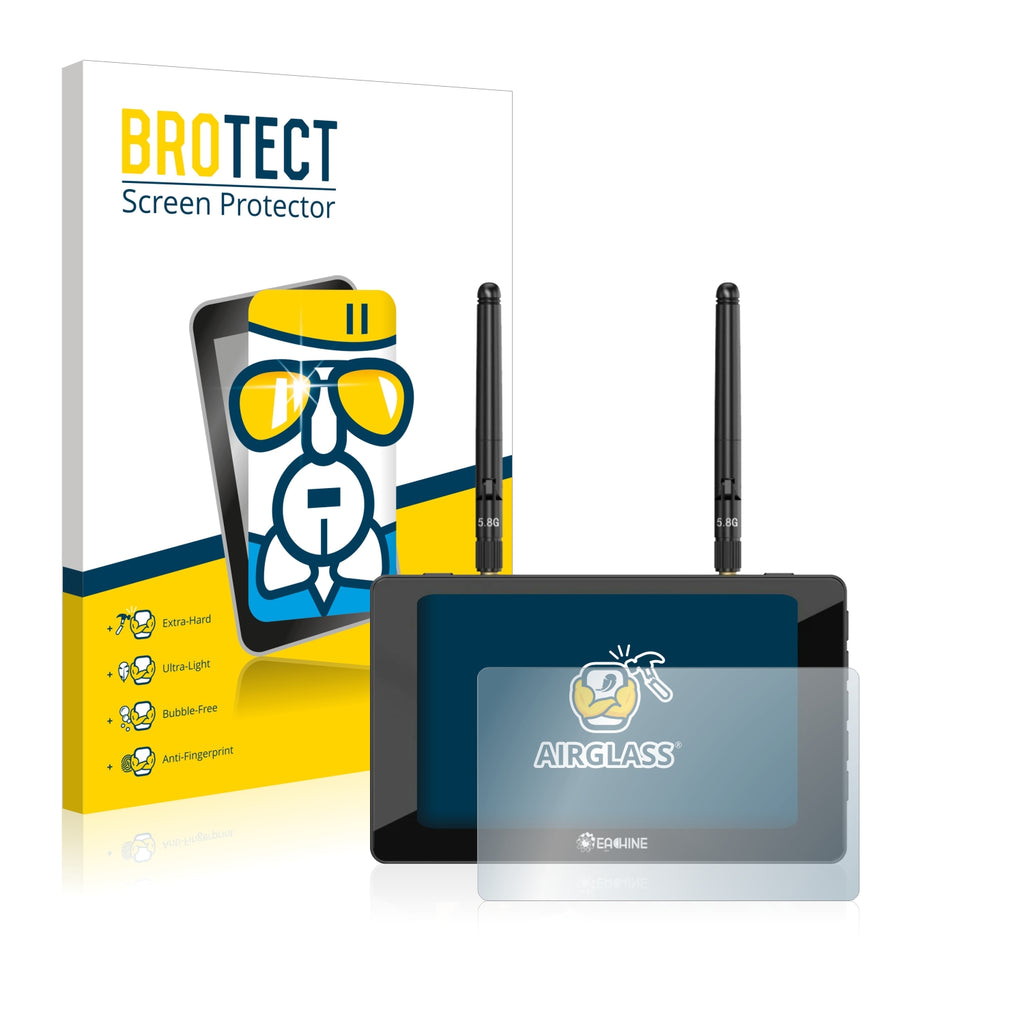 Nano Glass AirGlass, exclusively offered by BROTECT It's 2x thinner and lighter than other tempered glass protectors and more flexible than all other glass protectors on the market, while still offering super strong anti-scratch hardness of thicker tempered screen protectors. Its Ultra-Light properties and High-Transparency ensure you have a clear, unobstructed, sharp view of the display, while maintaining touch-screen and multi-touch sensitivity. An additional Anti-Fingerprint layer helps prevent dirt and fingerprint smears. The adhesive layer ensures that the screen protector glides smoothly and effortlessly onto your Eachine Moneagle 5 for a bubble-free, easy installation. Please note: Because of the curved edges of some displays, some of our protectors are cut deliberately slightly smaller than the display.Ships with: