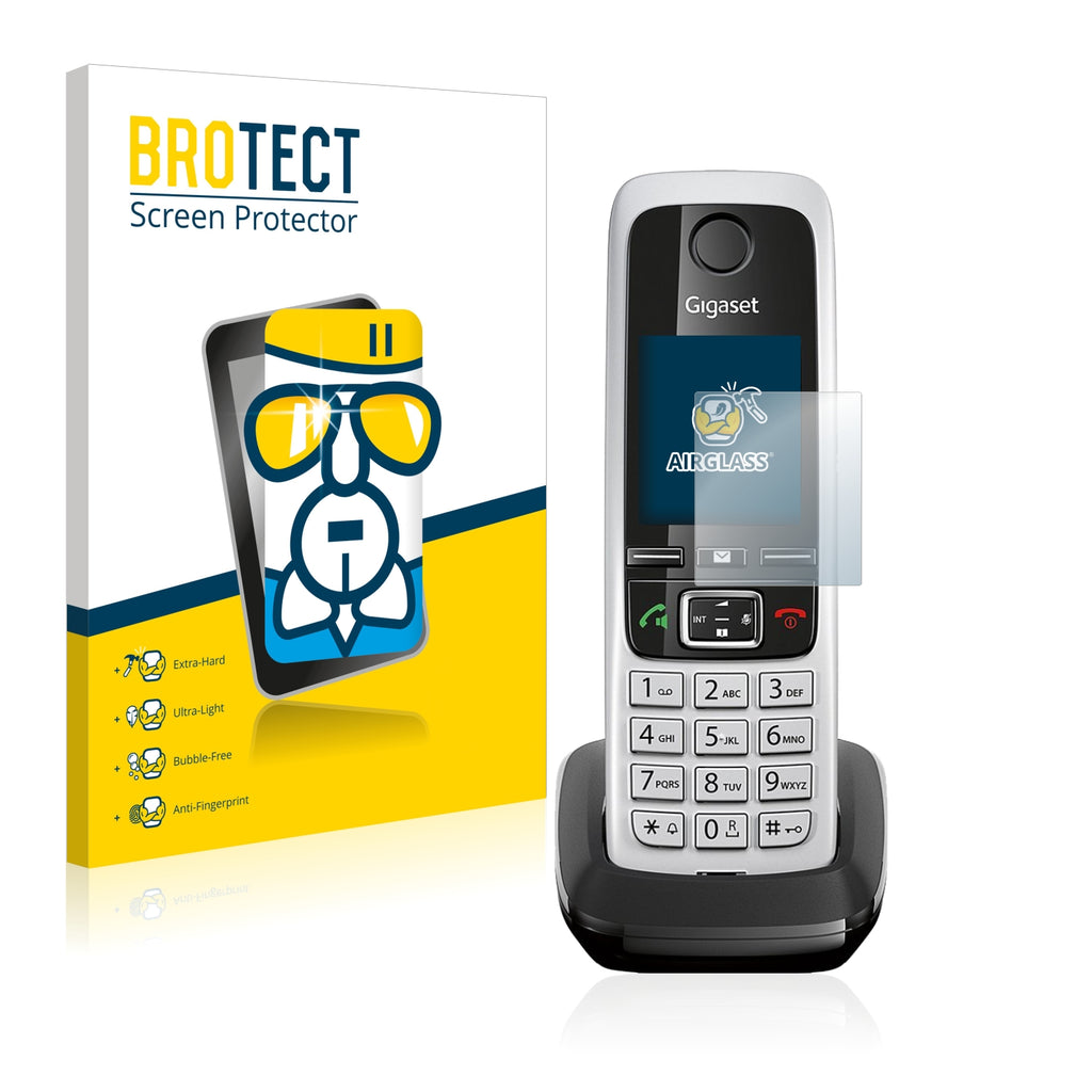 Nano Glass AirGlass, exclusively offered by BROTECT It's 2x thinner and lighter than other tempered glass protectors and more flexible than all other glass protectors on the market, while still offering super strong anti-scratch hardness of thicker tempered screen protectors. Its Ultra-Light properties and High-Transparency ensure you have a clear, unobstructed, sharp view of the display, while maintaining touch-screen and multi-touch sensitivity. An additional Anti-Fingerprint layer helps prevent dirt and fingerprint smears. The adhesive layer ensures that the screen protector glides smoothly and effortlessly onto your Gigaset C430HX for a bubble-free, easy installation. Please note: Because of the curved edges of some displays, some of our protectors are cut deliberately slightly smaller than the display.Ships with:
