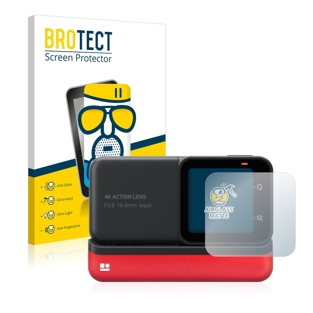 Matte Finish, Anti-Glare Screen Protector. Thin, light and super-strong, this anti-glare screen protector is the ultimate companion for your device. Its Ultra-Light properties and High-Transparency ensure you have a clear, unobstructed and sharp view of the display, while maintaining touch-screen and multi-touch sensitivity. The surface of the glass screen protector is matte and therefore reduces annoying reflections on your display, while providing a unique touch-screen sensitivity. An additional Anti-Fingerprint layer helps prevent dirt and fingerprint smears. The adhesive layer ensures that the screen protector glides smoothly and effortlessly onto your Insta360 One RS 4K Edition for a bubble-free, easy installation. Please note: Because of the curved edges of some displays, some of our protectors are cut deliberately slightly smaller than the display.