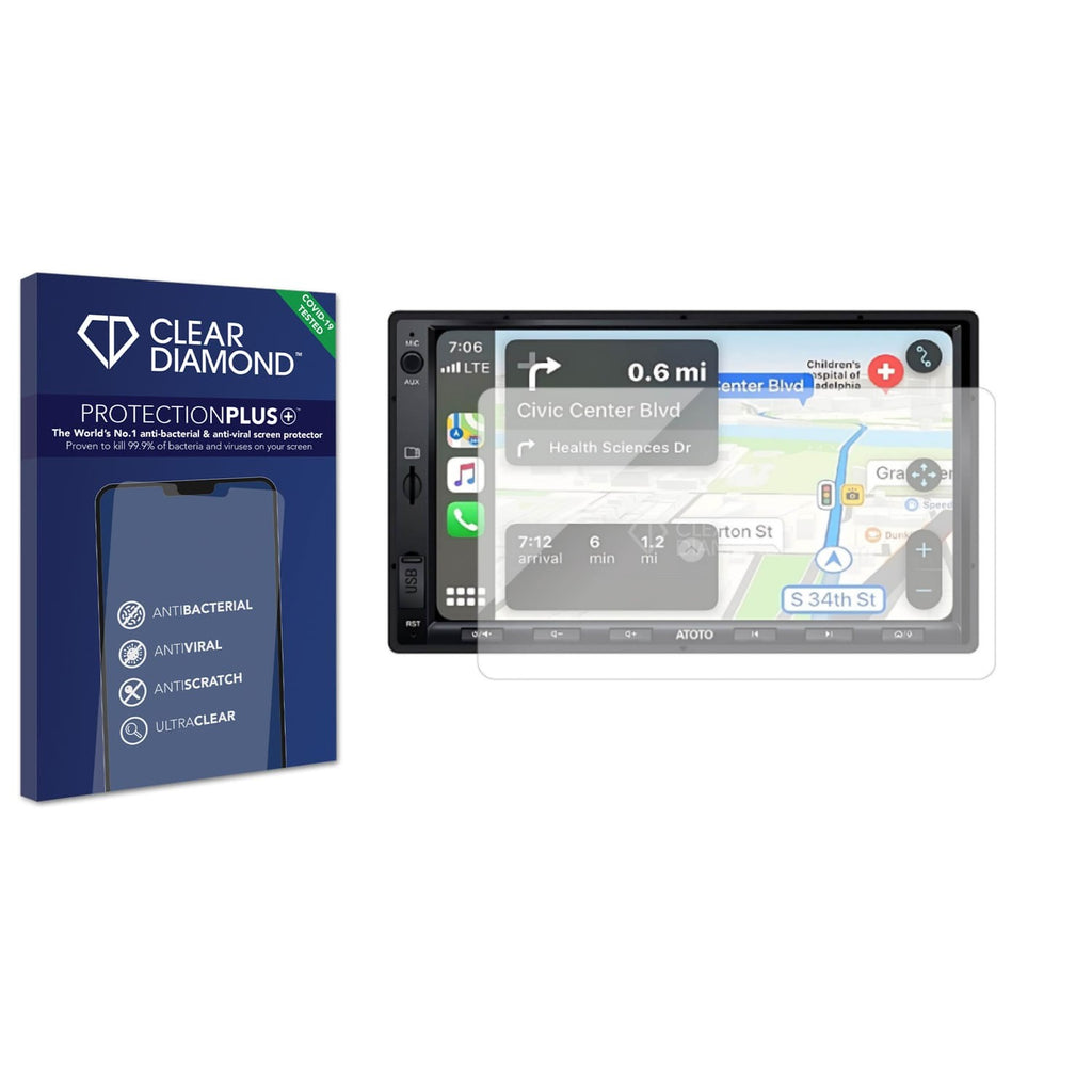 The Clear Diamond Screen Protection film for Atoto F7 WE F7G2B7WE 7 is easy to install and provides anti-bacterial, anti-viral and anti-scratch protection for your touchscreen with a crystal-clear finish. Display Protection is key to maintaining a touchscreens integrity and the patented Protection Plus+ anti-bacterial hard-coat layer in Clear Diamond Screen Protection Films enables you to protect your screen and yourself.