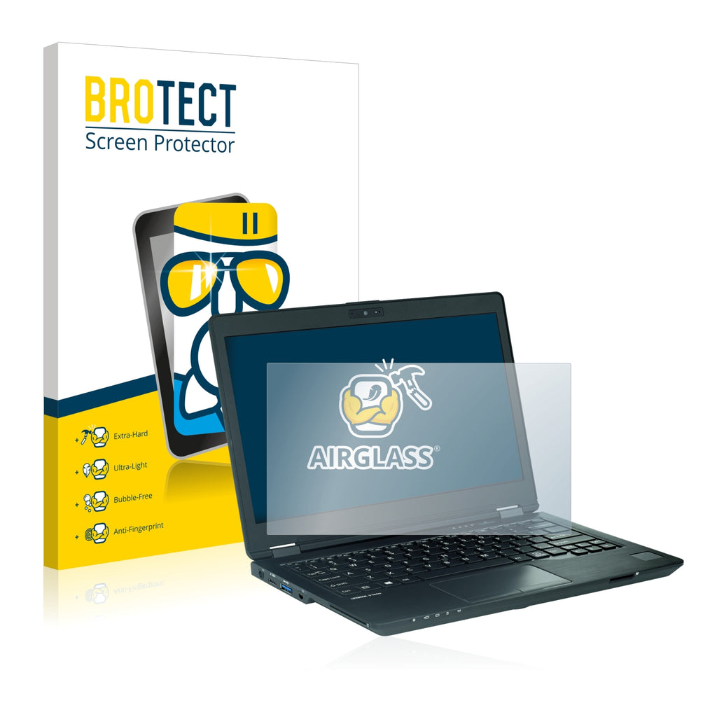 Nano Glass AirGlass, exclusively offered by BROTECT It's 2x thinner and lighter than tempered glass protectors and more flexible than all other glass protectors on the market, while still offering super strong anti-scratch hardness of thicker tempered screen protectors. Its Ultra-Light properties and High-Transparency ensure you have a clear, unobstructed, sharp view of the display, while maintaining touch-screen and multi-touch sensitivity. An additional Anti-Fingerprint layer helps prevent dirt and fingerprint smears. The adhesive layer ensures that the screen protector glides smoothly and effortlessly onto your Fujitsu Lifebook U729 for a bubble-free, easy installation. Please note: Because of the curved edges of some displays, some of our protectors are cut deliberately slightly smaller than the display.Ships with: