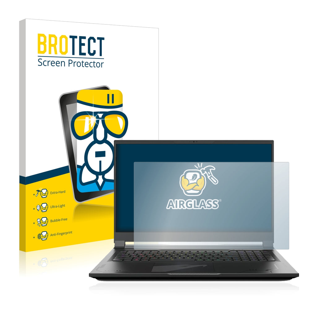 Nano Glass AirGlass, exclusively offered by BROTECT It's 2x thinner and lighter than tempered glass protectors and more flexible than all other glass protectors on the market, while still offering super strong anti-scratch hardness of thicker tempered screen protectors. Its Ultra-Light properties and High-Transparency ensure you have a clear, unobstructed, sharp view of the display, while maintaining touch-screen and multi-touch sensitivity. An additional Anti-Fingerprint layer helps prevent dirt and fingerprint smears. The adhesive layer ensures that the screen protector glides smoothly and effortlessly onto your Gigabyte AORUS 17X 2023 for a bubble-free, easy installation. Please note: Because of the curved edges of some displays, some of our protectors are cut deliberately slightly smaller than the display.Ships with: